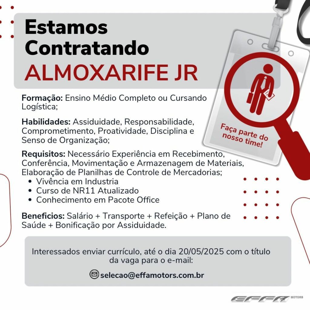 O processo seletivo para esta(s) vaga(s) não cobra absolutamente nada pela sua candidatura. Portanto, jamais aceite qualquer tipo de cobrança para cadastrar seu currículo.