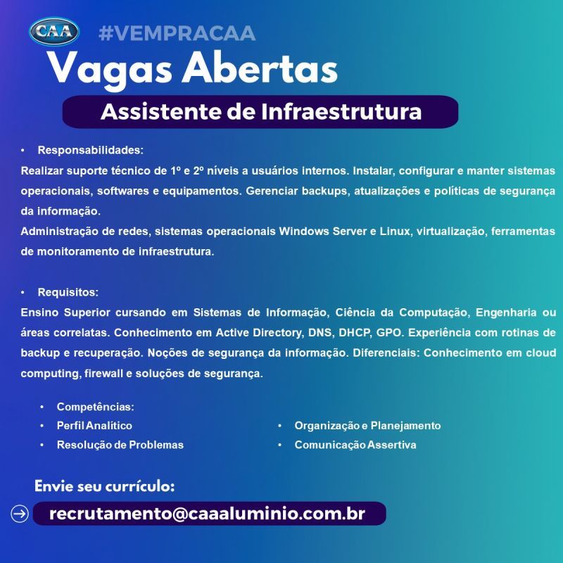 Empresa CAA Alumínio está selecionando para vagas de emprego