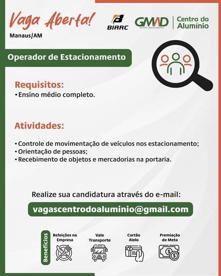 Empresa centro do alumínio seleciona Operador de estacionamento; Envie seu currículo!
