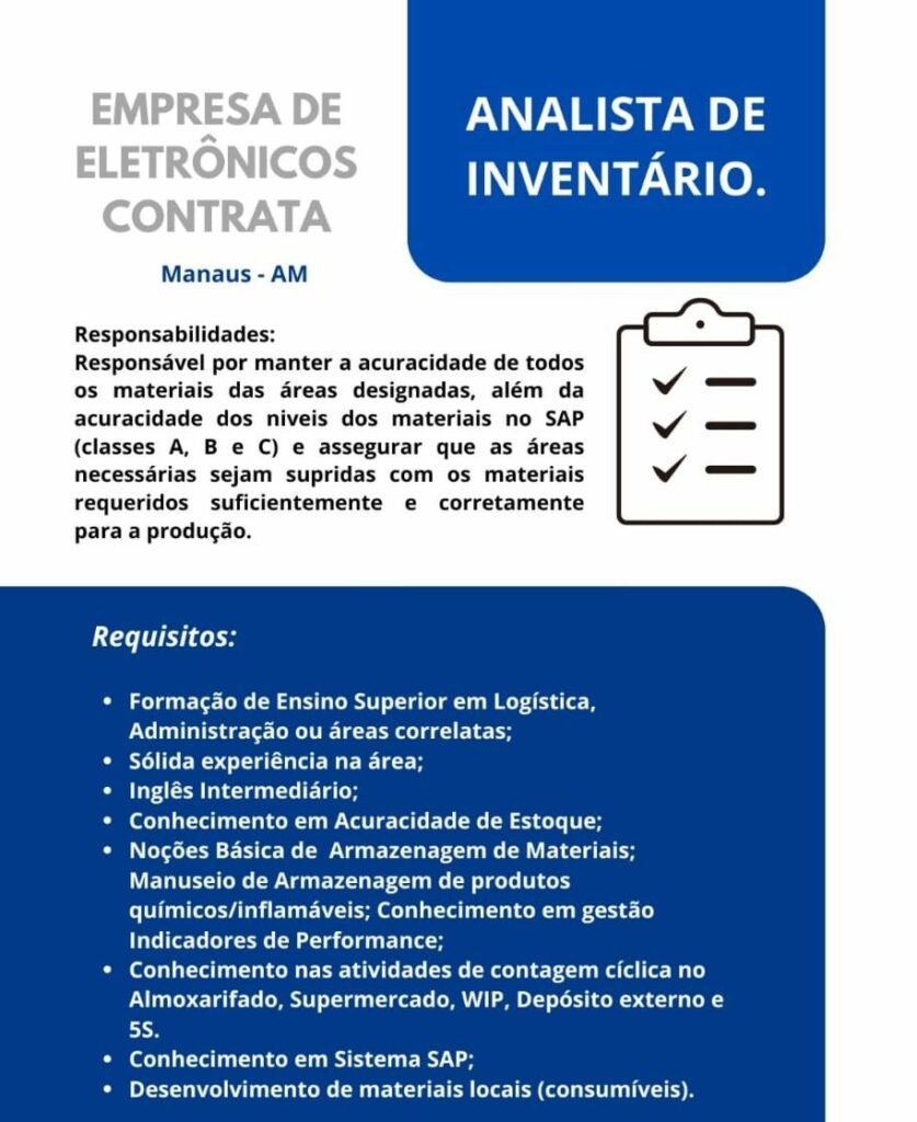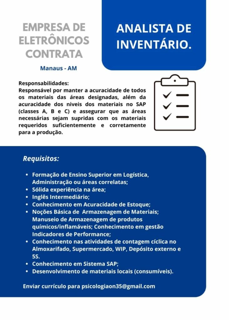 Empresa de eletrônicos contrata Analista de inventário; Envie seu currículo!