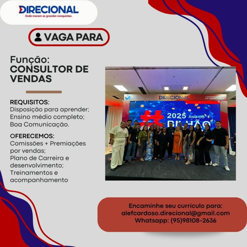 Empresa Direcional está selecionando Consultor de vendas;