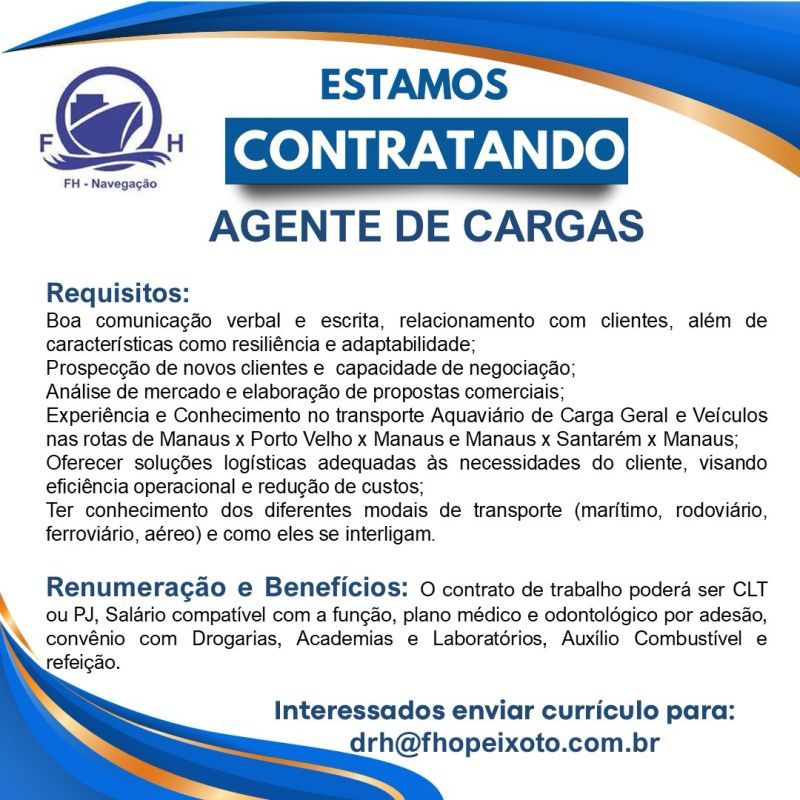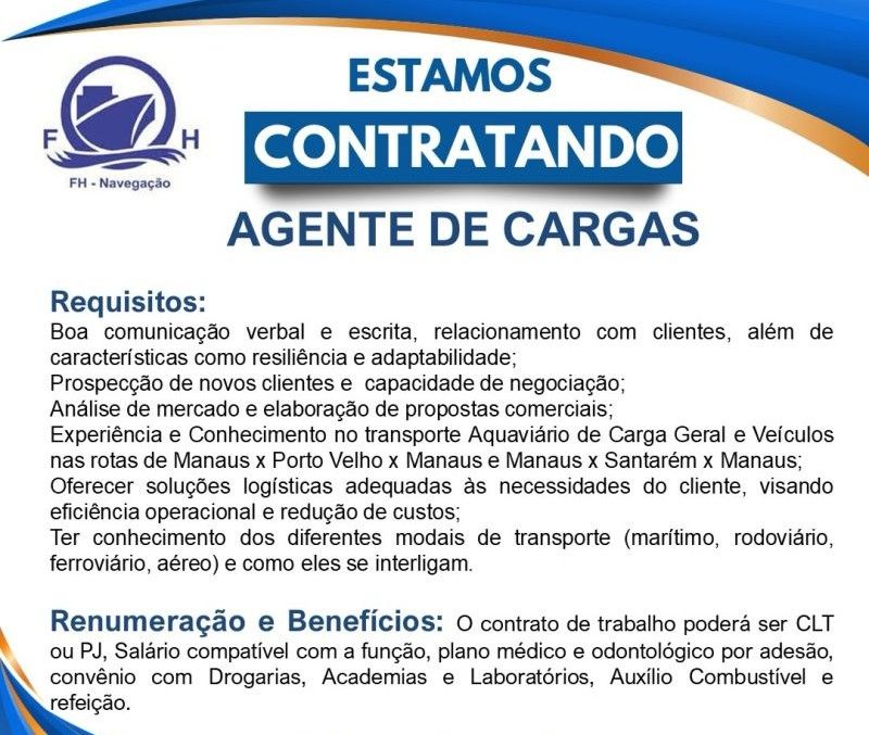 Empresa está selecionando Agente de cargas; Envie seu currículo!