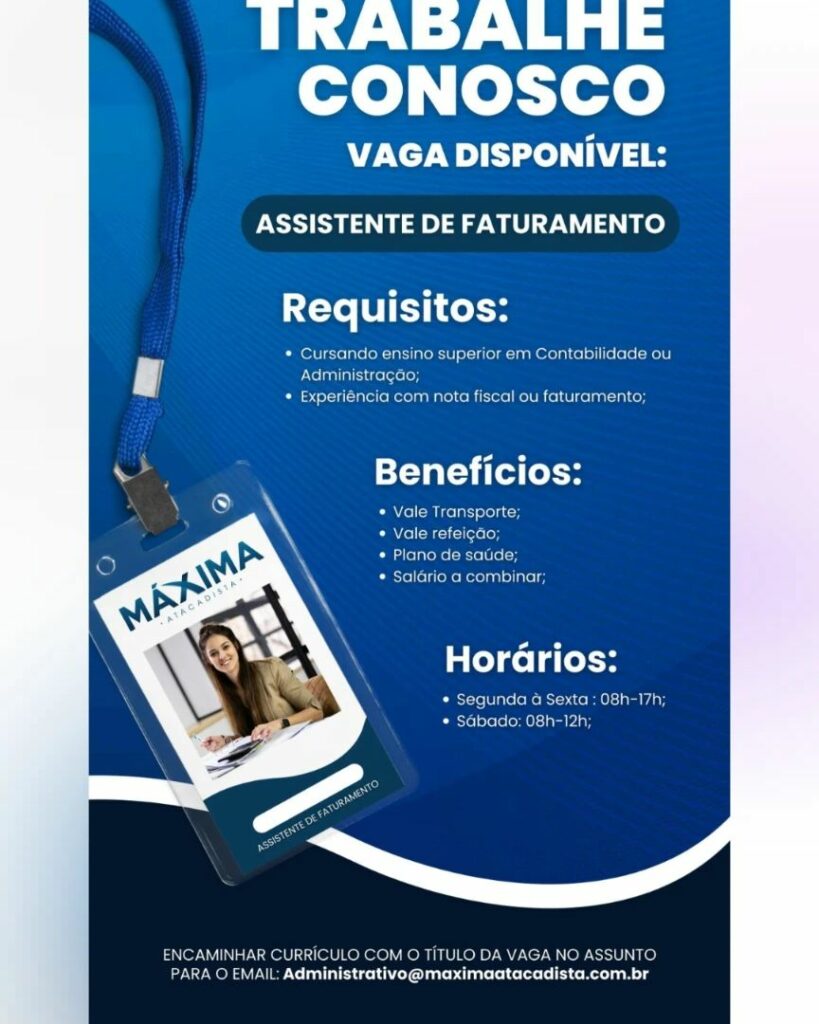 Empresa está selecionando Assistente de Faturamento; Envie seu currículo!