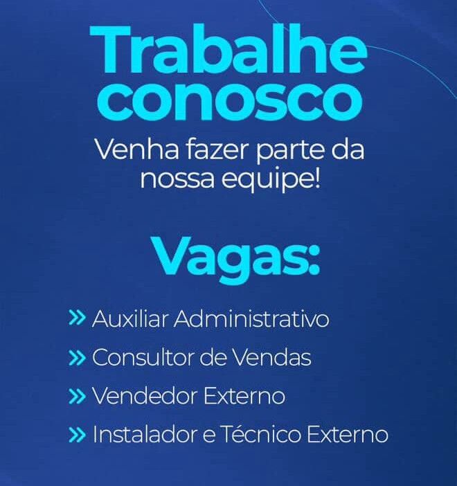 Empresa está selecionando Auxiliar administrativo, Consultor de vendas, Vendedor externo, Instalador e técnico externo, Diretor comercial, Gerente de vendas; Envie seu currículo!