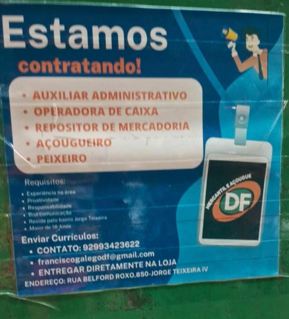 Empresa está selecionando Auxiliar administrativo, Operadora de caixa, Repositor de Mercadoria, Açougueiro, Peixeiro; Envie seu currículo!