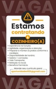 Nunca pague qualquer quantia para participar de um processo para que seja selecionado. Não compre nenhum curso, apostilas ou serviços que prometem participação na seleção ou contratação de uma vaga. E nunca insira dados bancários, cartões ou envie documentos por e-mail ou através de sites que não reconhecem. Não nos responsabilizamos por nenhum tipo de pagamento efetuado.