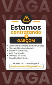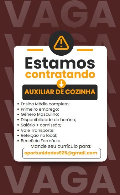 Empresa está selecionando Auxiliar de cozinha, Hostess, Garçom, Cozinheiro (a); Envie seu currículo!
