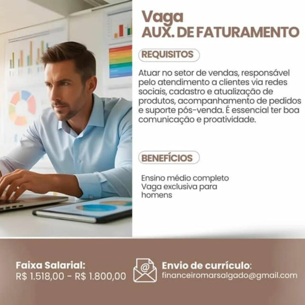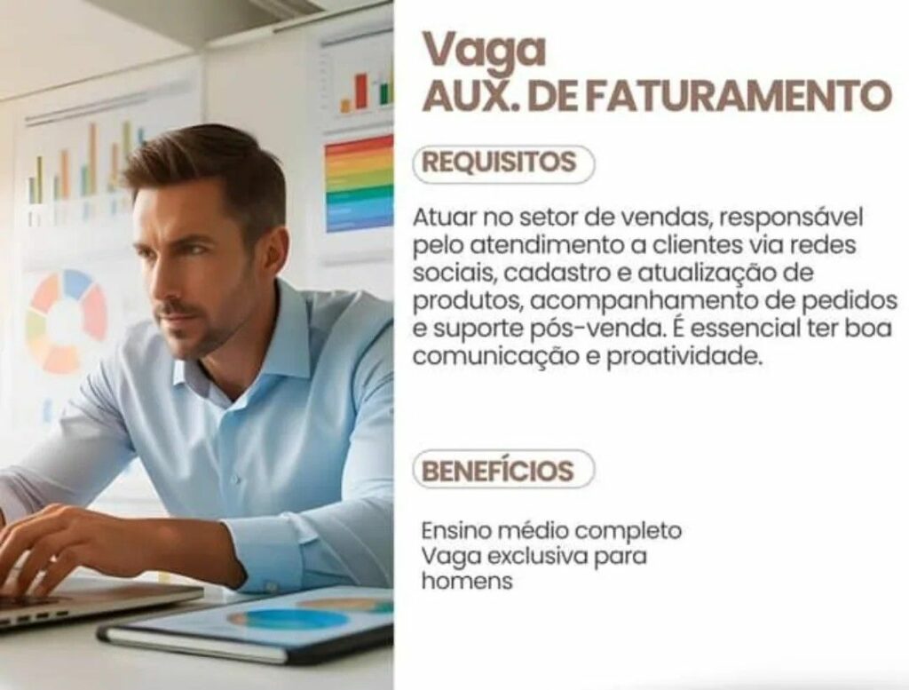 Empresa está selecionando Auxiliar de faturamento; Envie seu currículo!