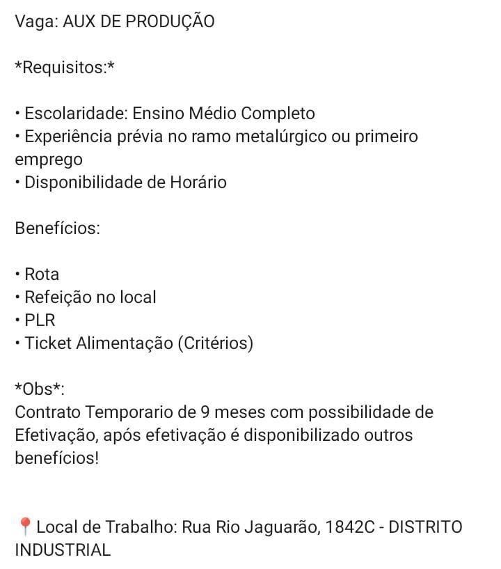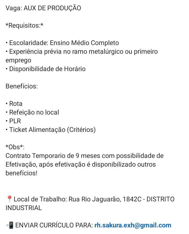 Empresa está selecionando Auxiliar de produção; Envie seu currículo!