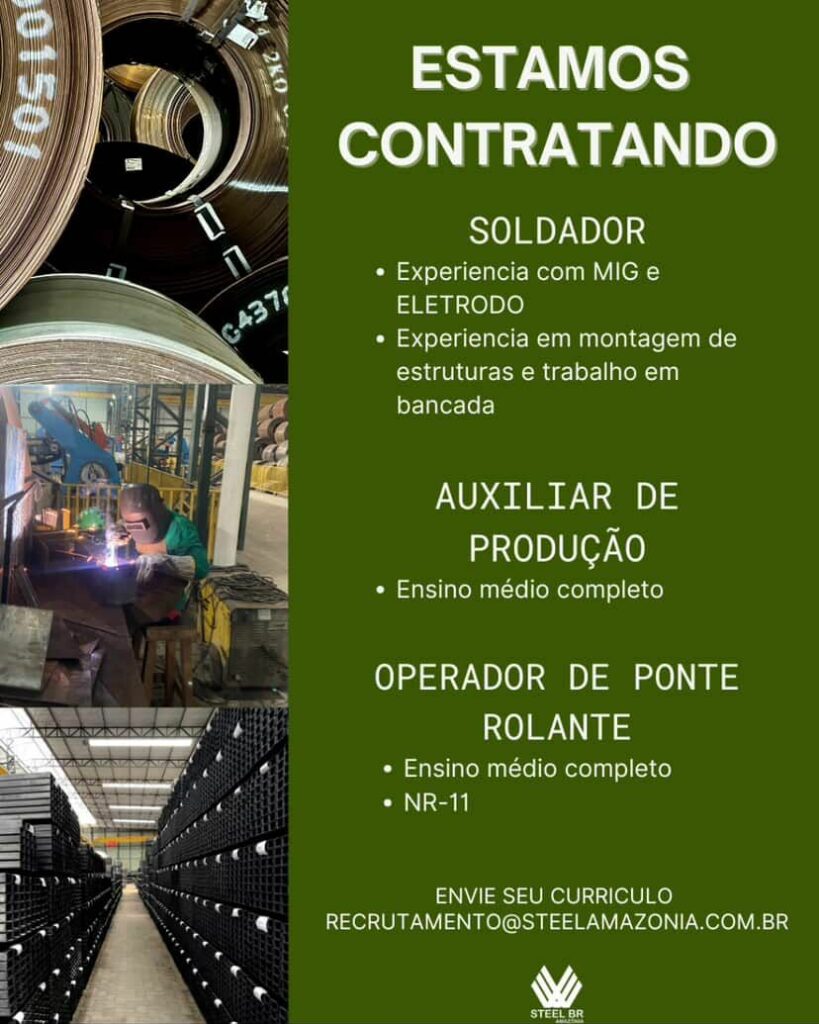 Amazon Aço recrutando para três vagas de emprego em Manaus