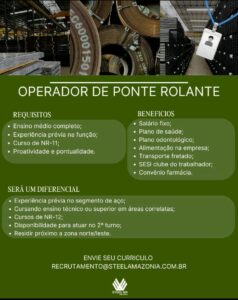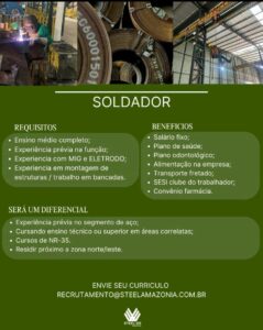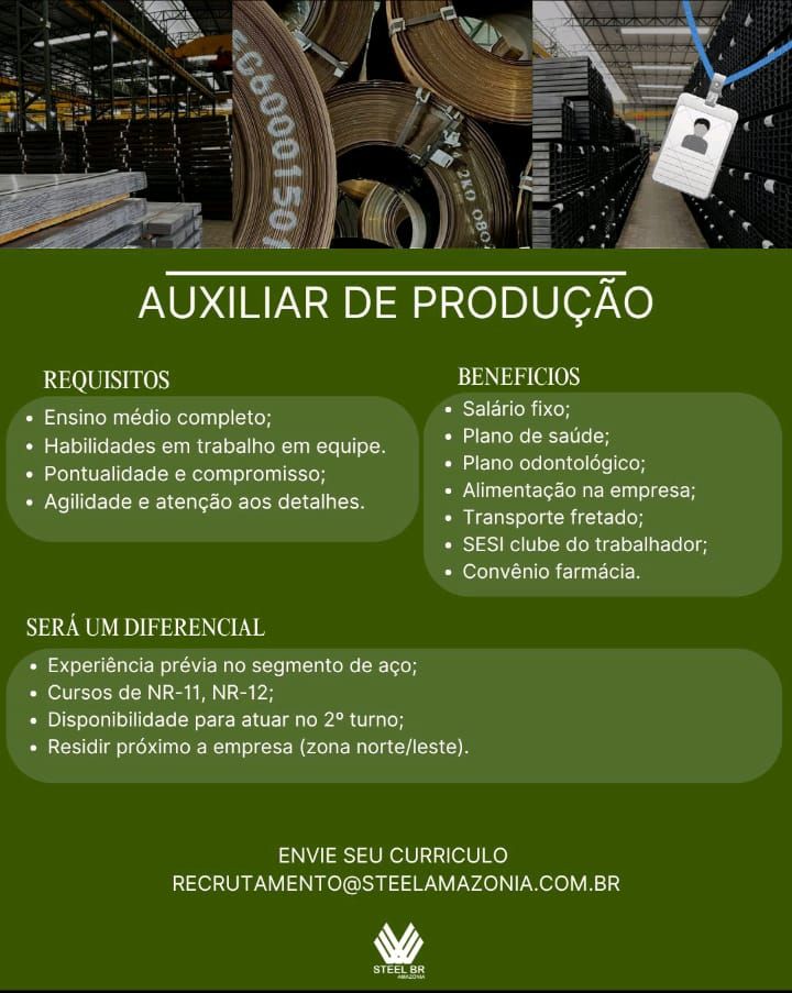 Amazon Aço recrutando para três vagas de emprego em Manaus