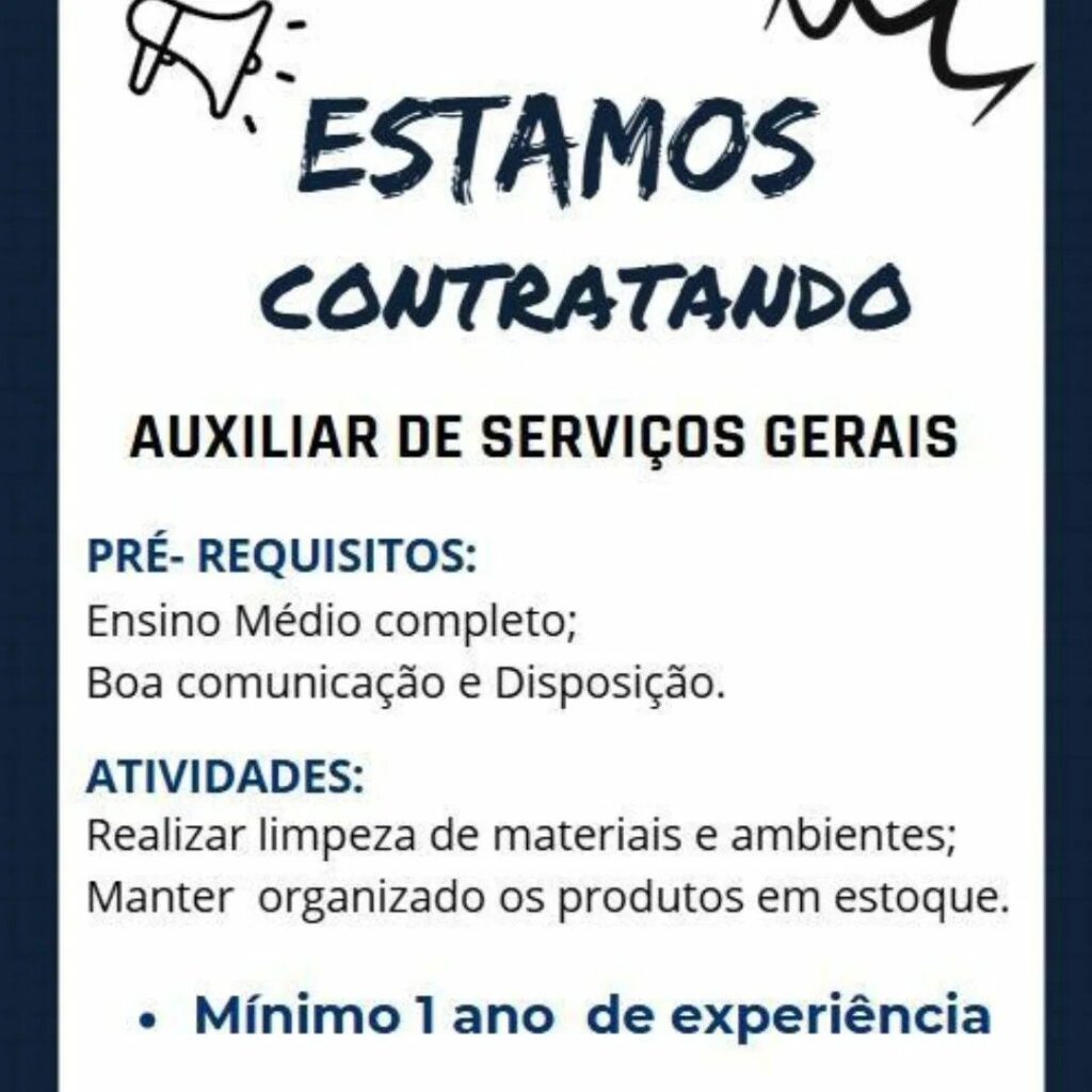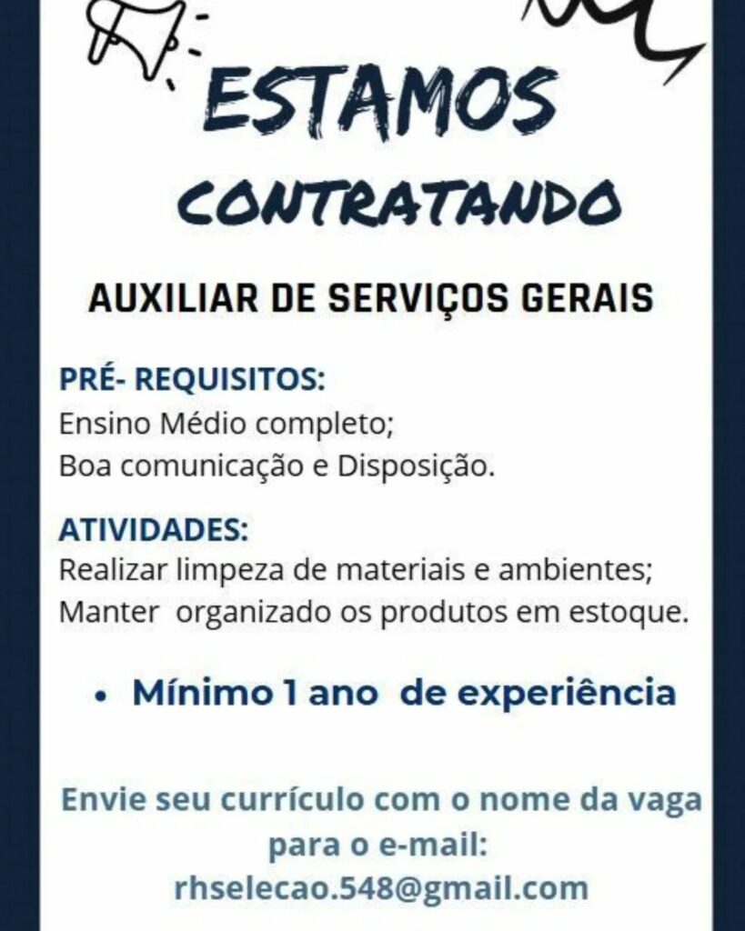 Empresa está selecionando Auxiliar de serviços gerais; Envie seu currículo!