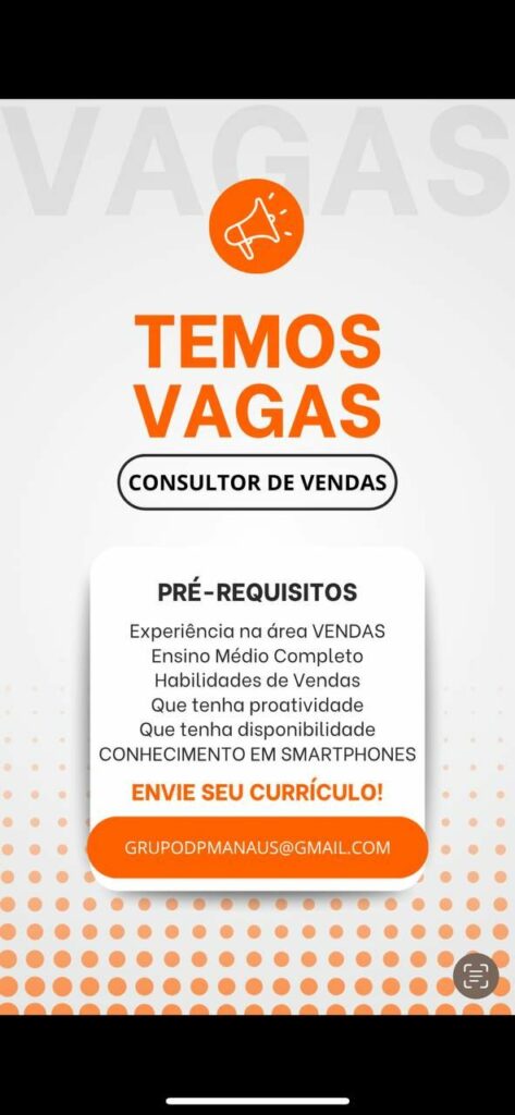 Empresa está selecionando Consultor de vendas; Envie seu currículo!