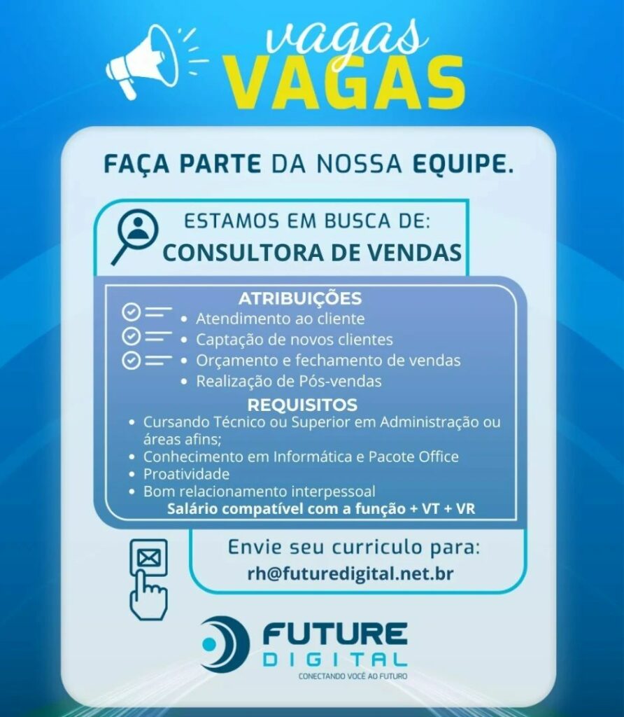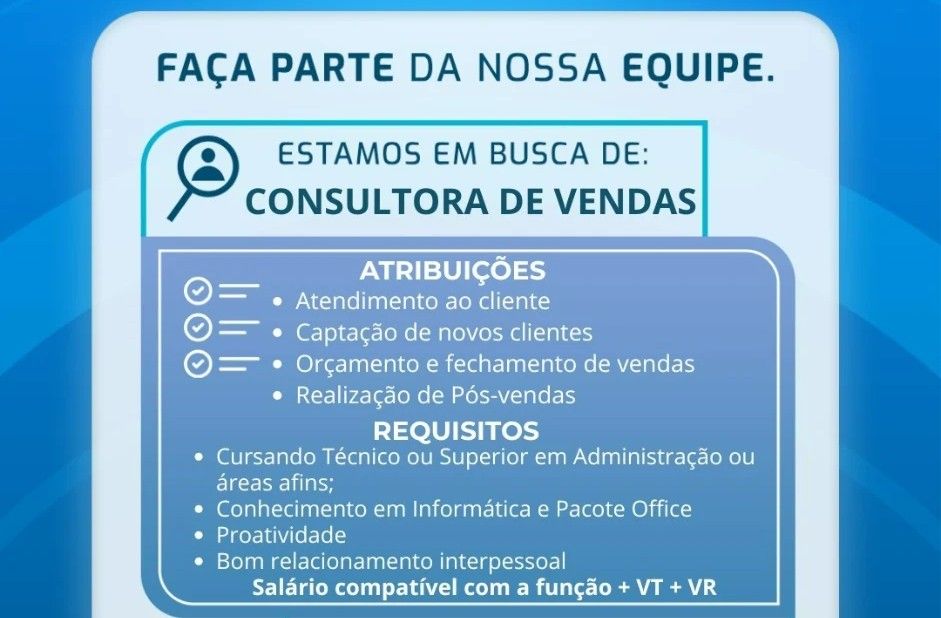 Empresa está selecionando Consultora de vendas; Envie seu currículo!