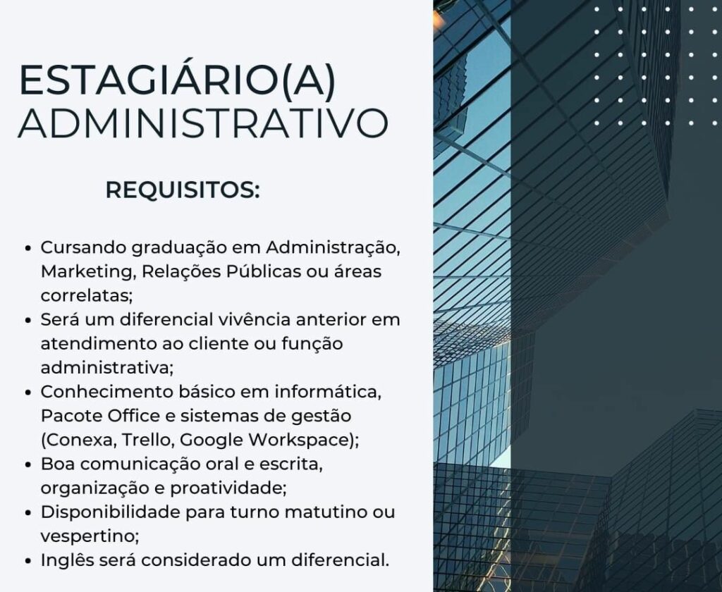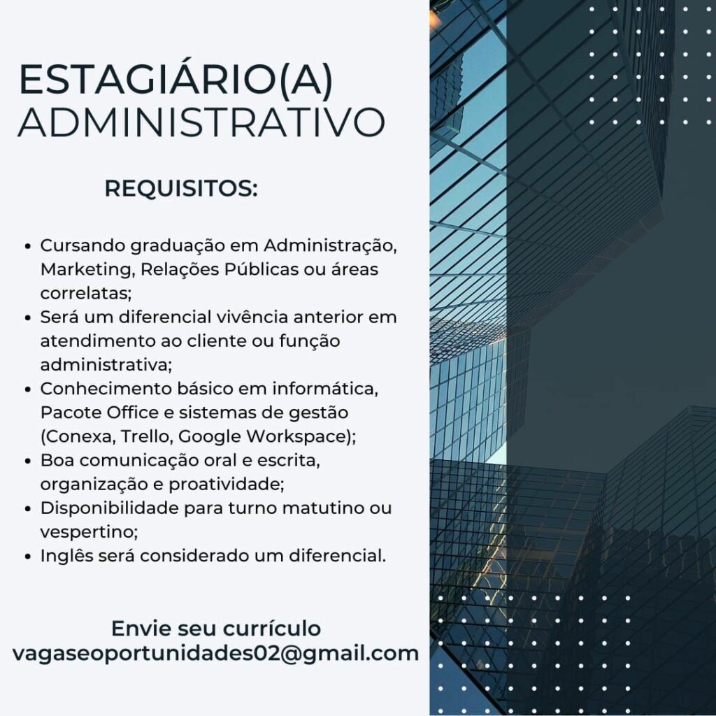 Empresa está selecionando Estagiário (a) administrativo; Envie seu currículo!