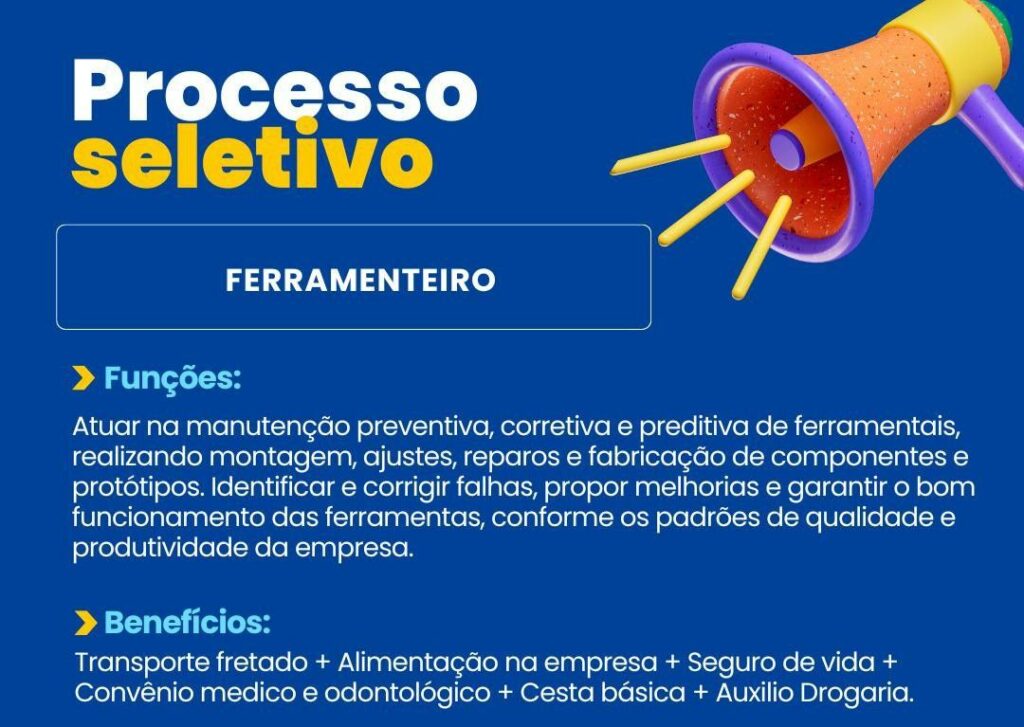 Empresa está selecionando Ferramenteiro; Envie seu currículo!