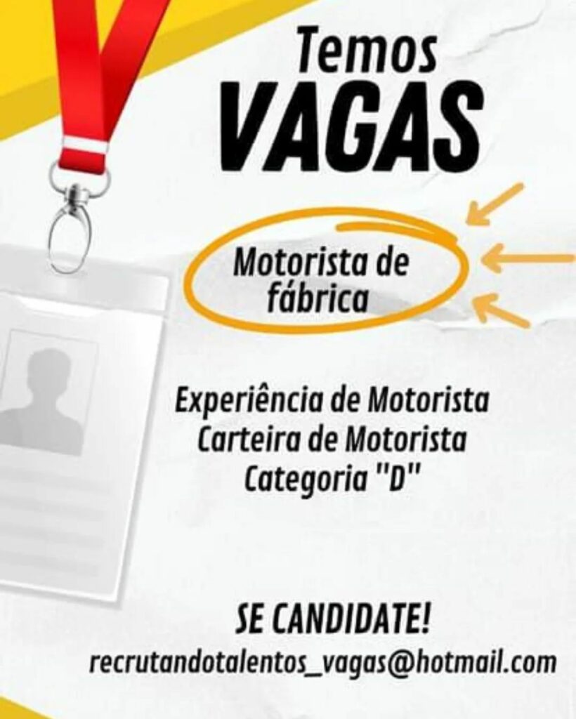 Empresa está selecionando Motorista de fábrica; Envie seu currículo!
