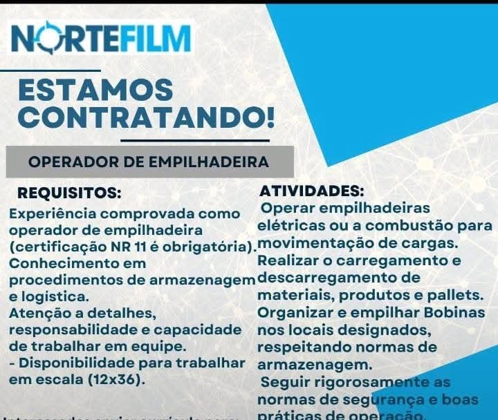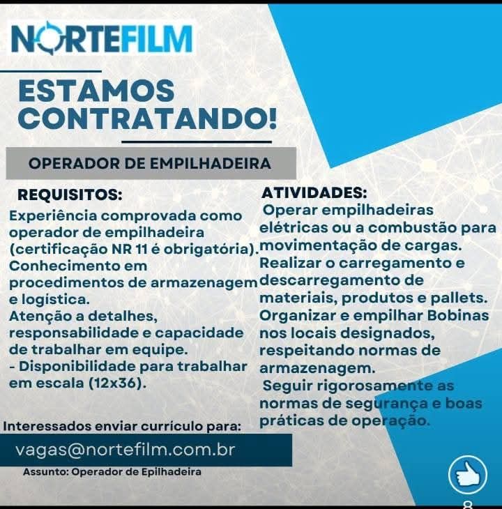 Empresa está selecionando Operador de empilhadeira; Envie seu currículo!