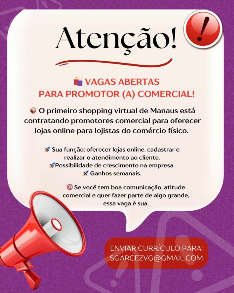 Empresa está selecionando Promotor (a) comercial; Envie seu currículo!