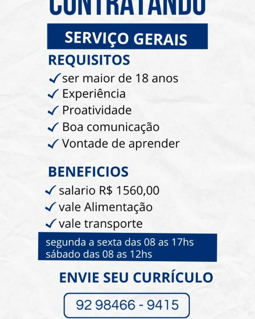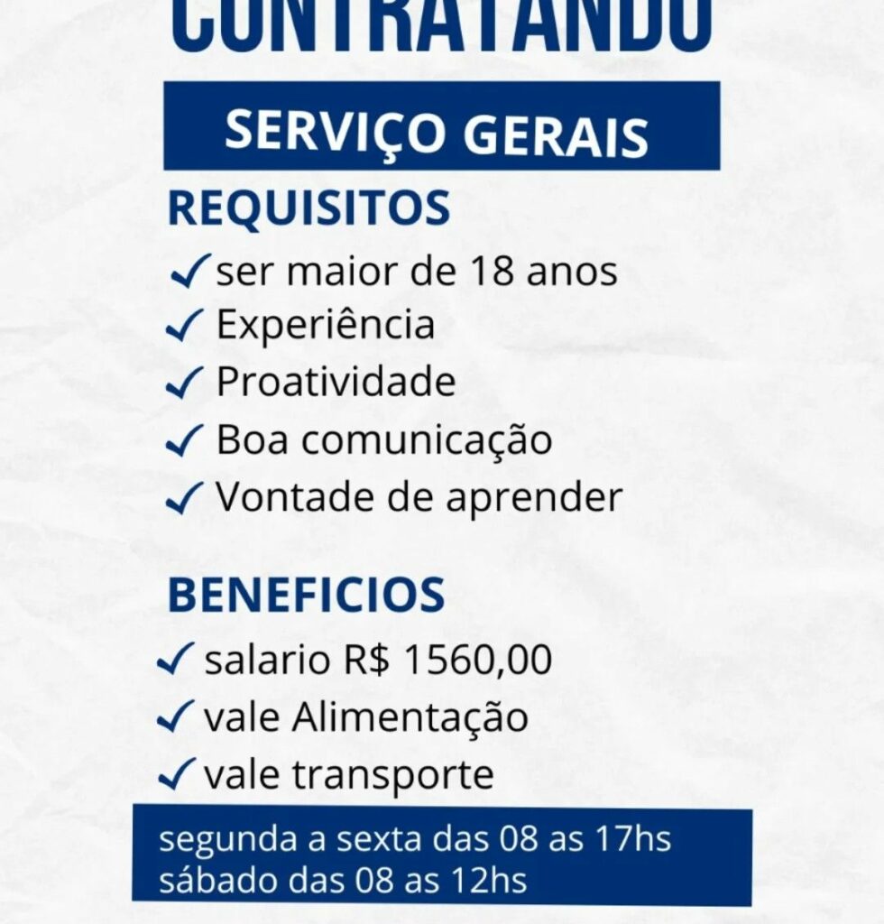 Empresa está selecionando Serviços Gerais; Envie seu currículo!