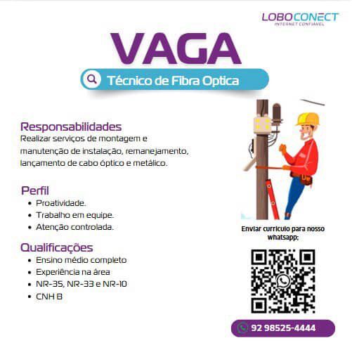 Empresa está selecionando Técnico de fibra óptica; Envie seu currículo!