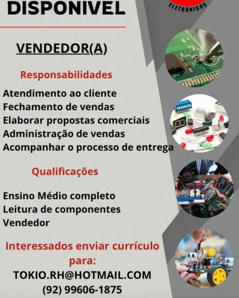 Empresa está selecionando Vendedor (a); Envie seu currículo!