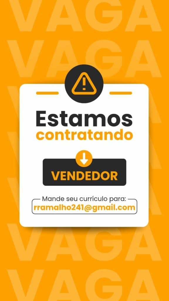 Empresa está selecionando Vendedor; Envie seu currículo!