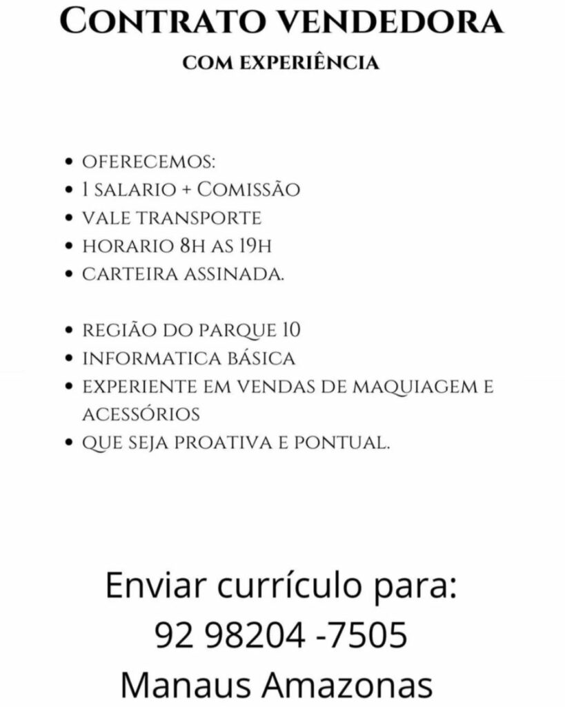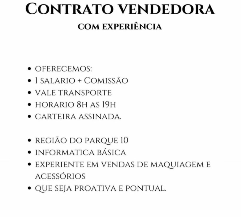 Empresa está selecionando Vendedora; Envie seu currículo!