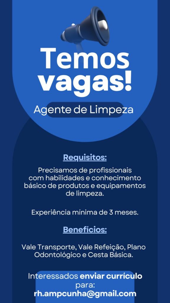 Empresa seleciona Agente de limpeza; Envie seu currículo!