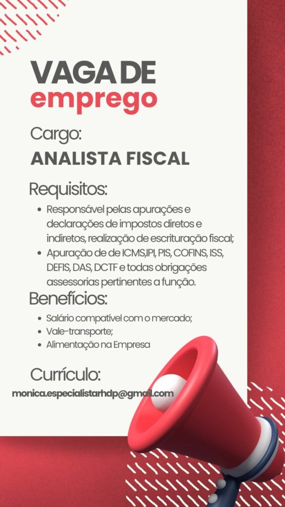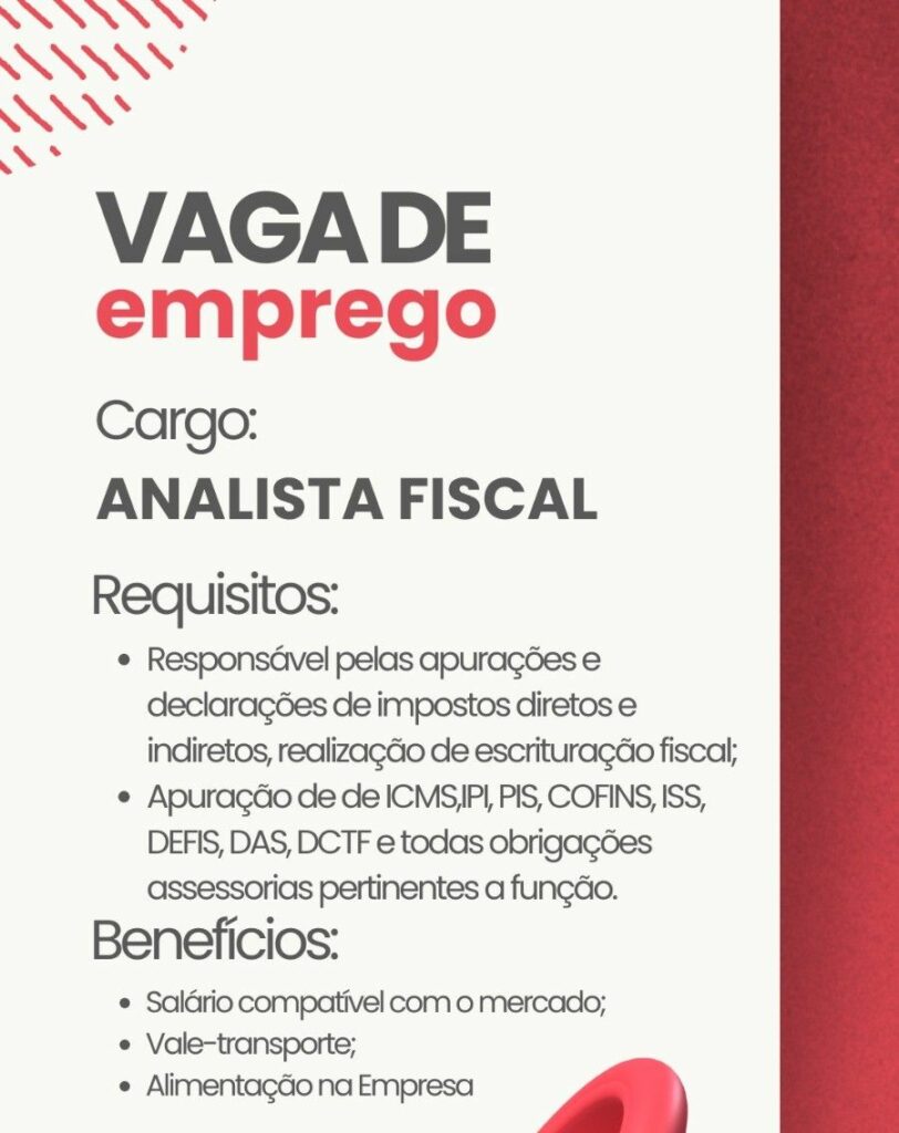 Empresa seleciona Analista fiscal; Envie seu currículo!