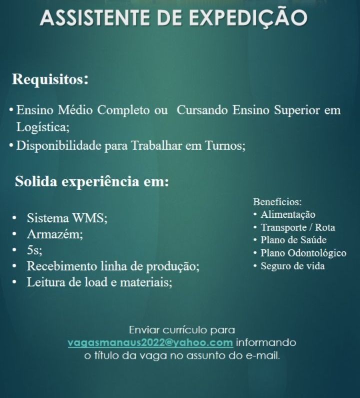 Empresa seleciona Assistente de expedição; Envie seu currículo!