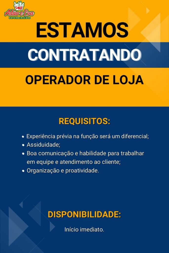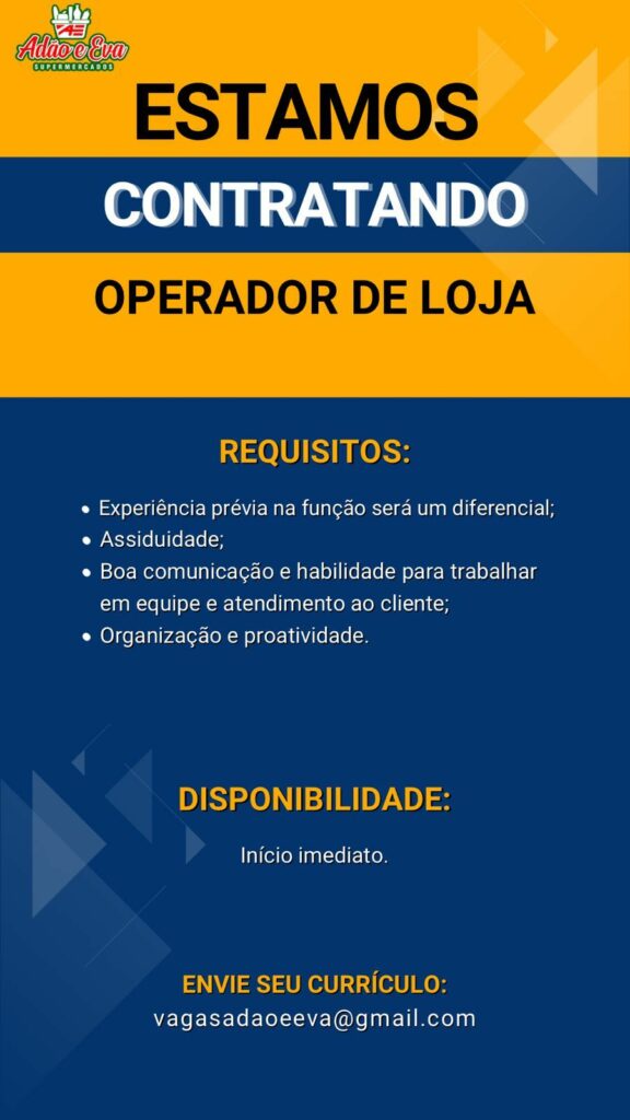 Empresa seleciona Operador de loja; Envie seu currículo!