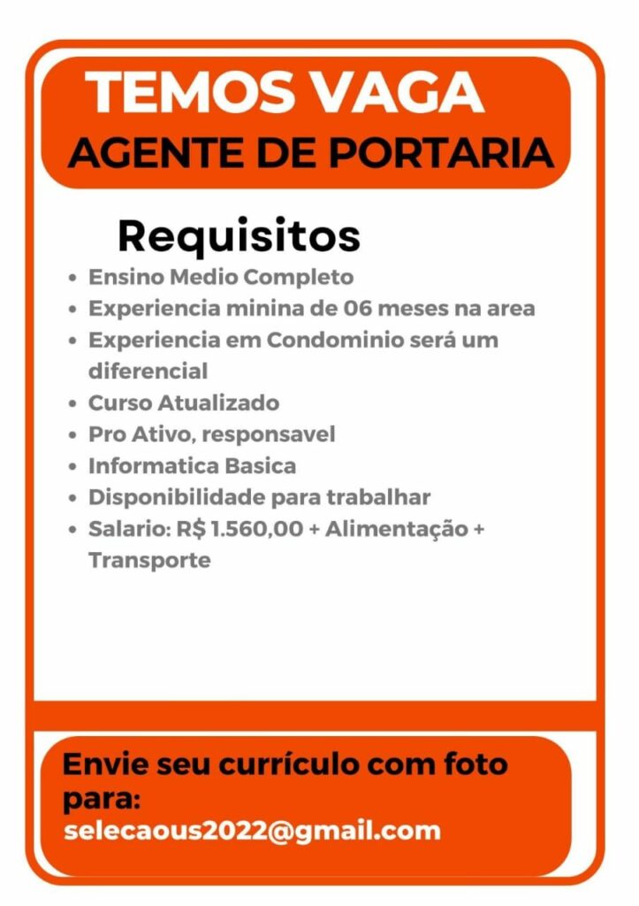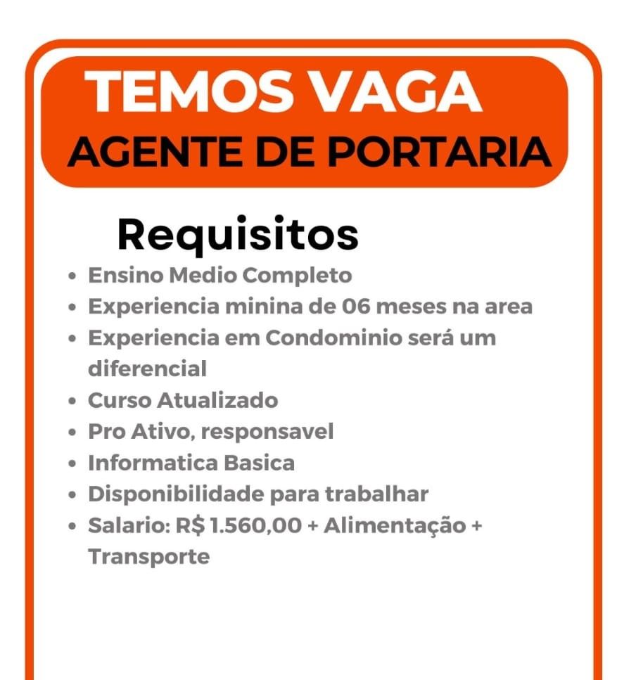 Empresa seleciona para vaga de Agente de portaria; Envie seu currículo!