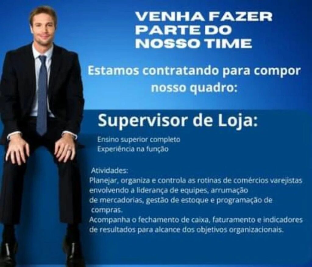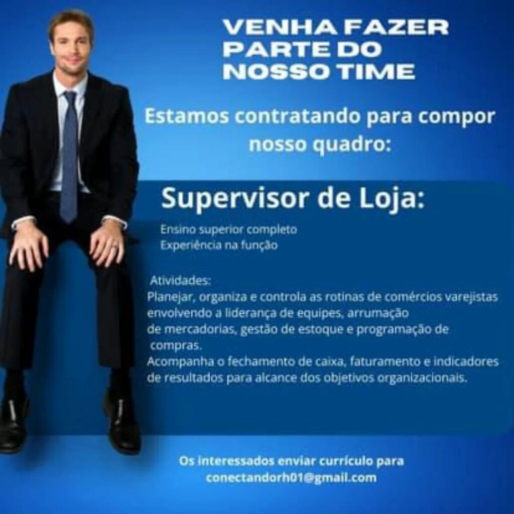 Empresa seleciona Supervisor de Loja; Envie seu currículo!