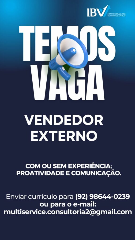 Empresa seleciona Vendedor externo; Envie seu currículo!