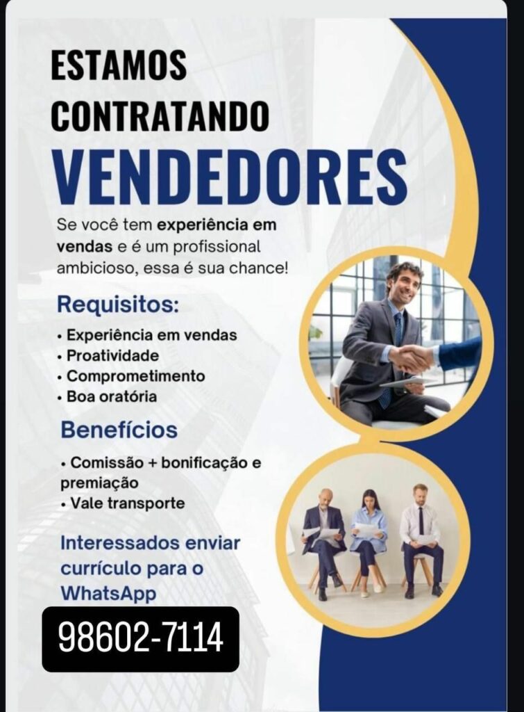 Empresa seleciona Vendedores; Envie seu currículo!