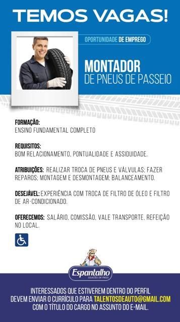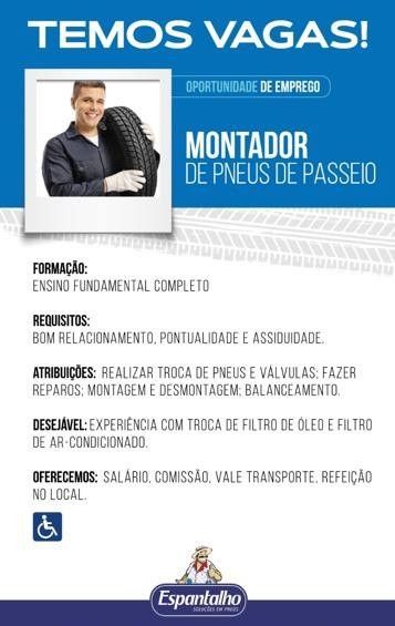 Espantalho pneus seleciona Montador de pneus de passeio; Envie seu currículo!