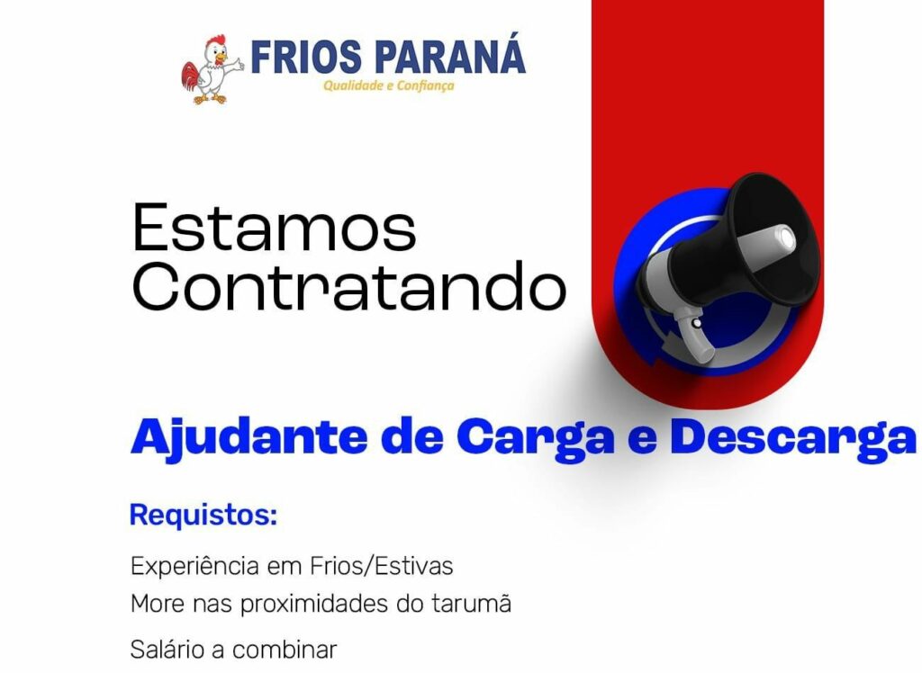 Frios Paraná seleciona Ajudante de carga e descarga; Envie seu currículo!
