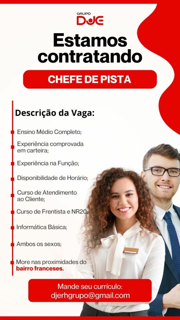 Grupo DJE seleciona Chefe de pista; Envie seu currículo!