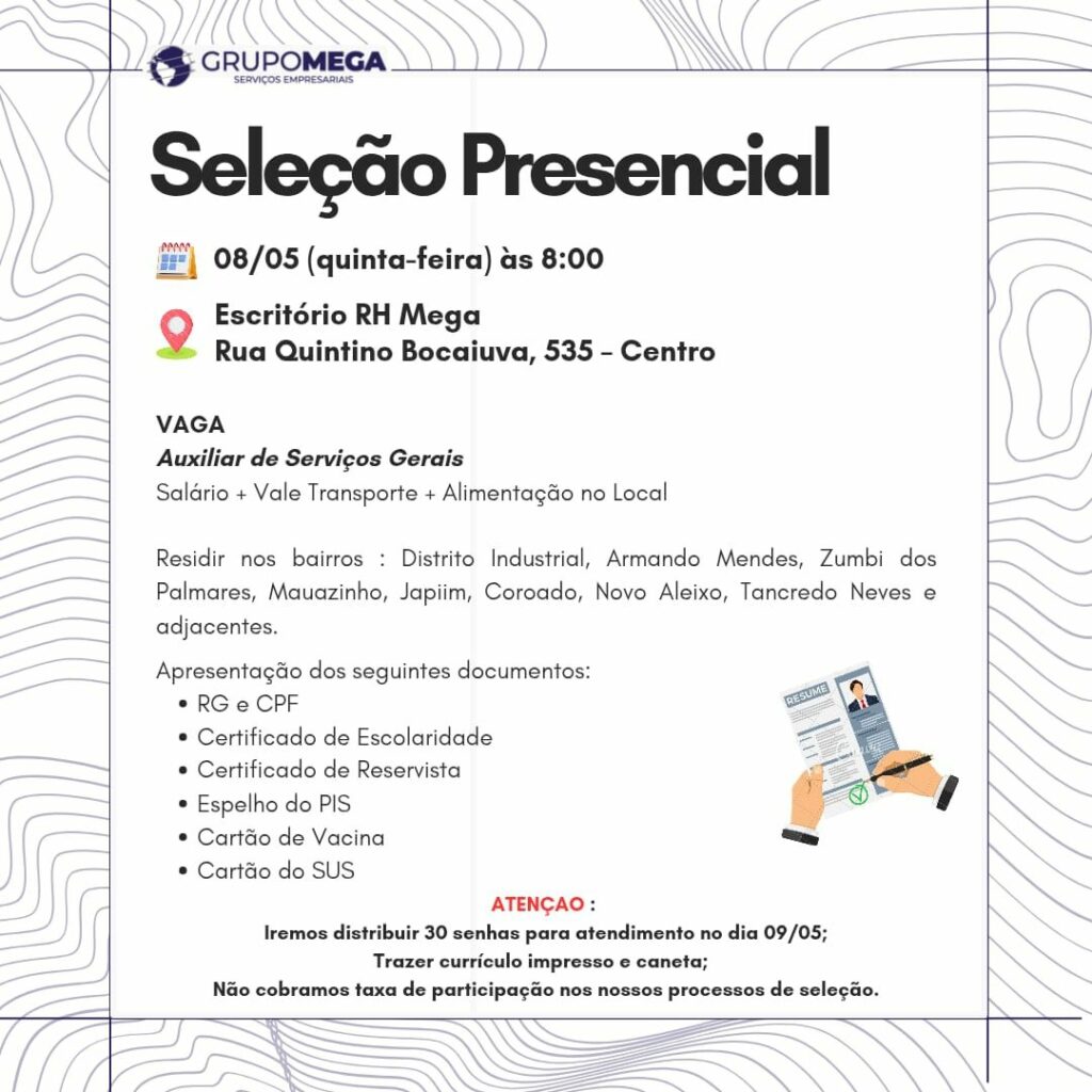 Nunca pague qualquer quantia para participar de um processo para que seja selecionado. Não compre nenhum curso, apostilas ou serviços que prometem participação na seleção ou contratação de uma vaga. E nunca insira dados bancários, cartões ou envie documentos por e-mail ou através de sites que não reconhecem. Não nos responsabilizamos por nenhum tipo de pagamento efetuado.