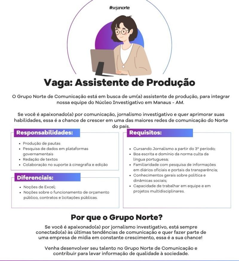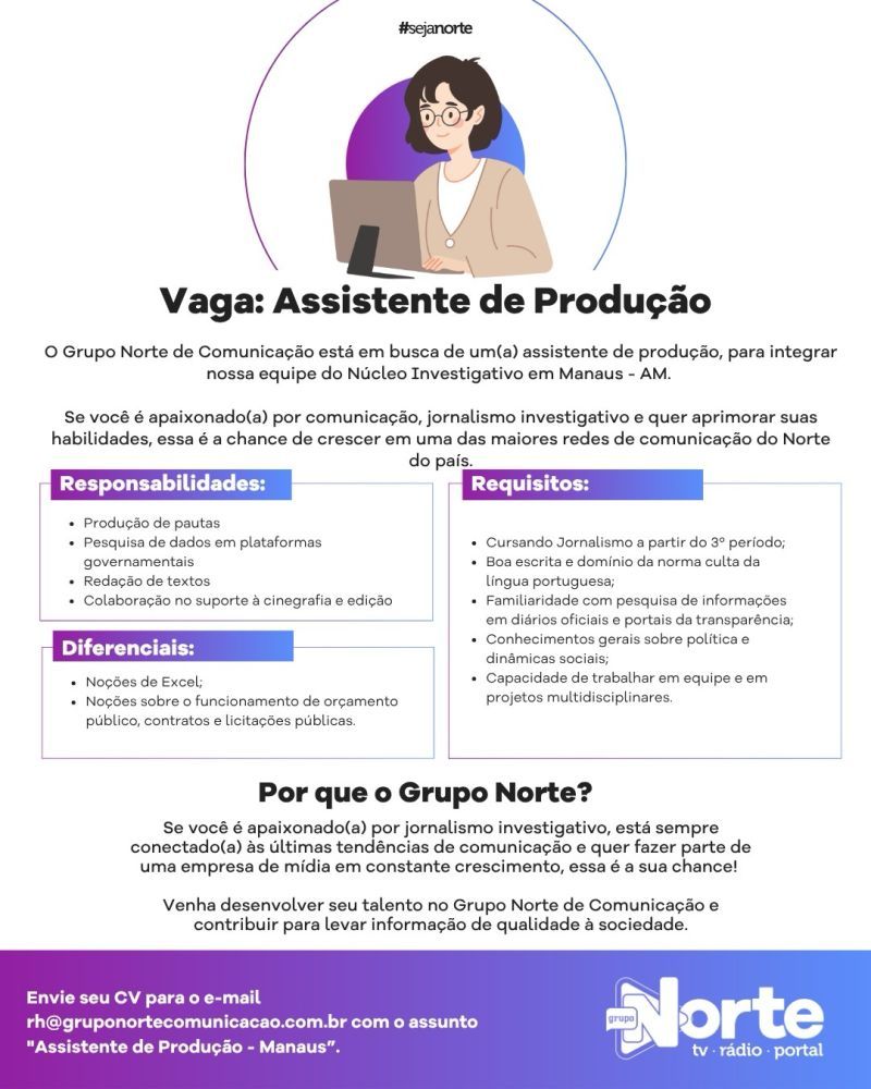 Grupo Norte está selecionando Assistente de produção; Envie seu currículo!