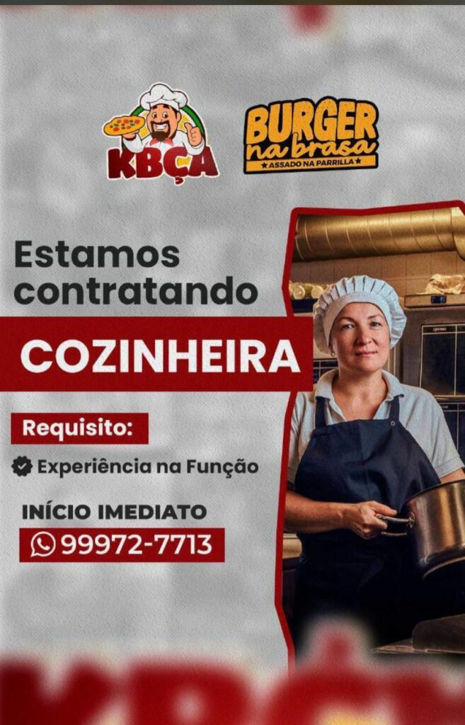 Hamburgueria está selecionando Cozinheira; Envie seu currículo!