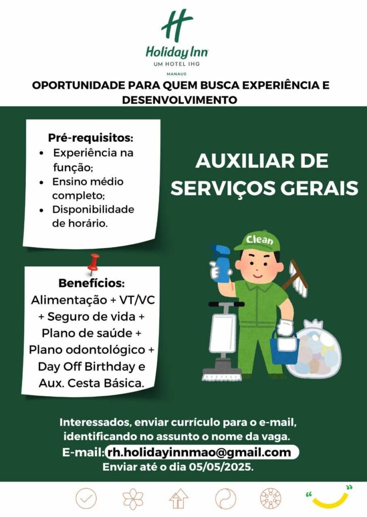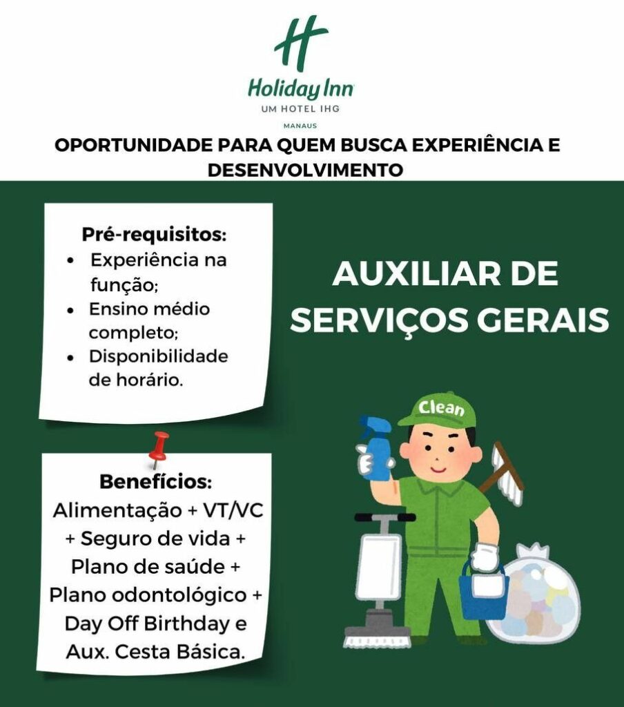 Holiday Inn Hotel seleciona Auxiliar de serviços gerais; Envie seu currículo!