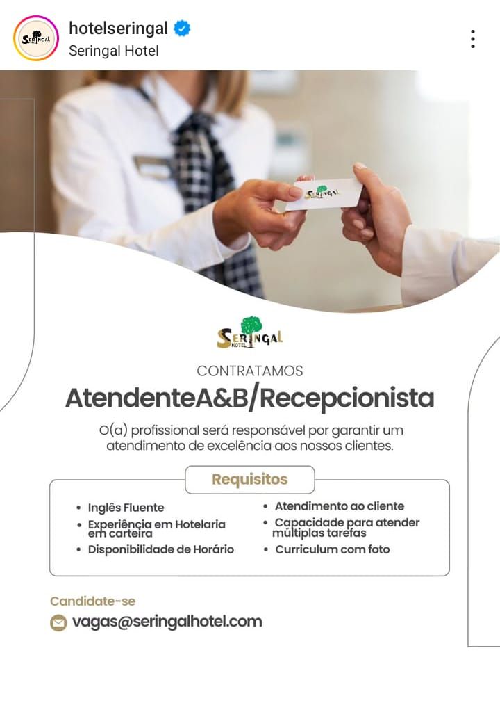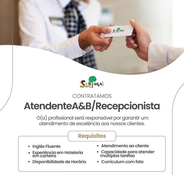Hotel está selecionando Atendente A&B/ Recepcionista; Envie seu currículo!