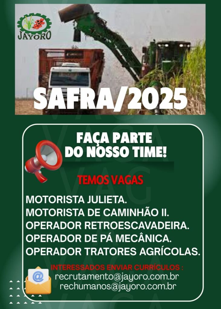 Jayoro está selecionando Motorista Julieta, Motorista de caminhão ll, Operador retroescavadeira, Operador de pá mecânica, Operador tratores agrícola; Envie seu currículo!