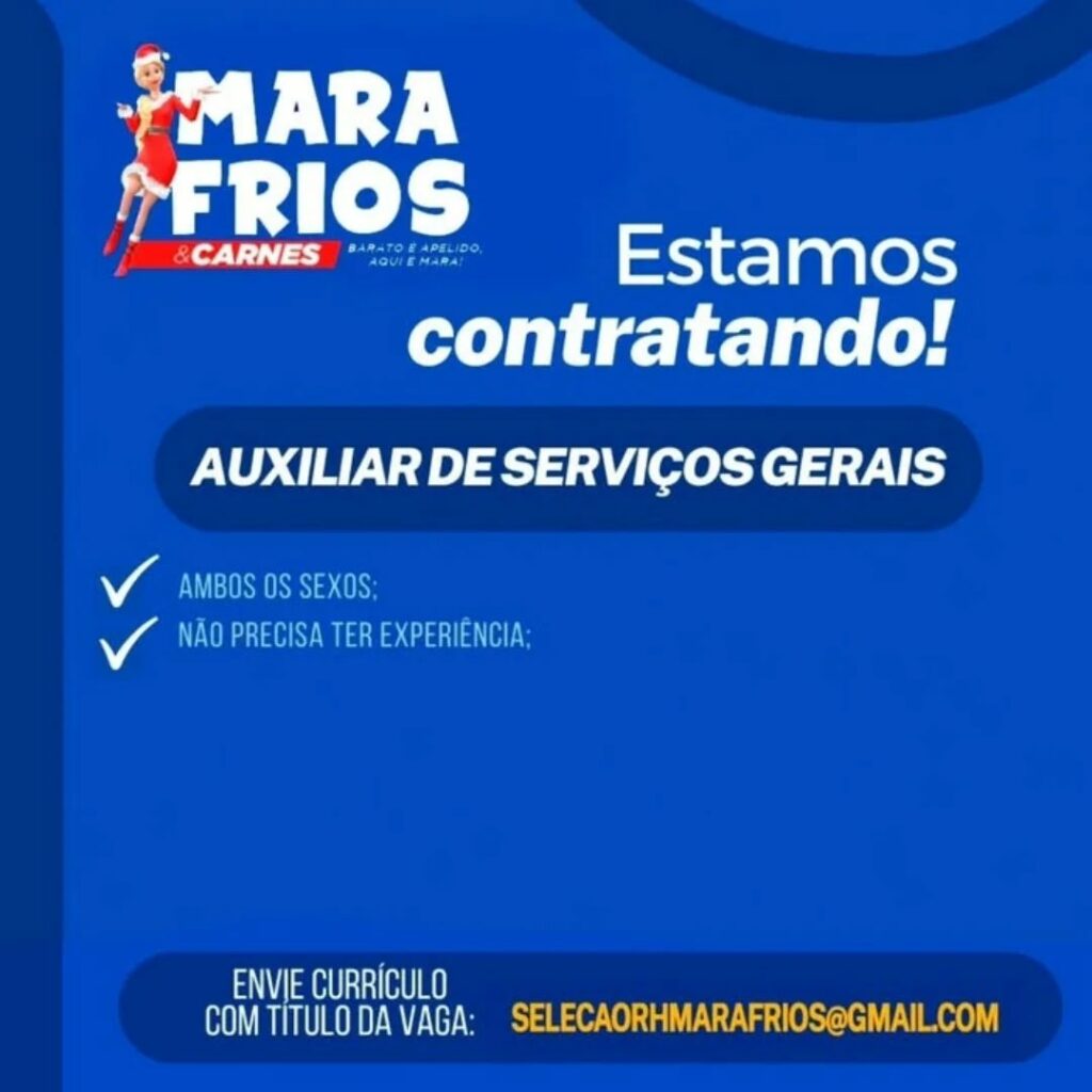 Mara frios está selecionando Auxiliar de serviços gerais; Envie seu currículo!