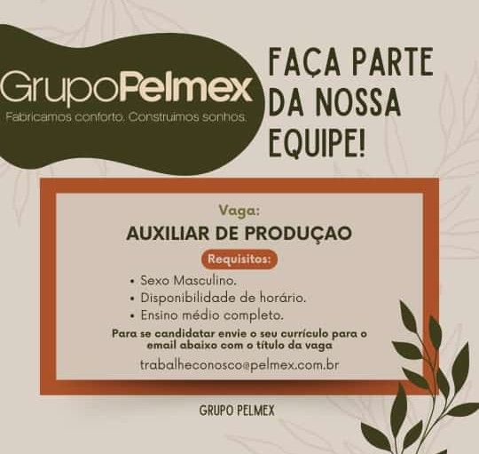 Pelmex está selecionando Auxiliar de produção; Envie seu currículo!