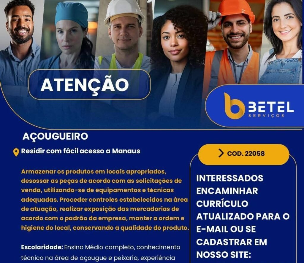 Rh está selecionando Açougueiro; Envie seu currículo!