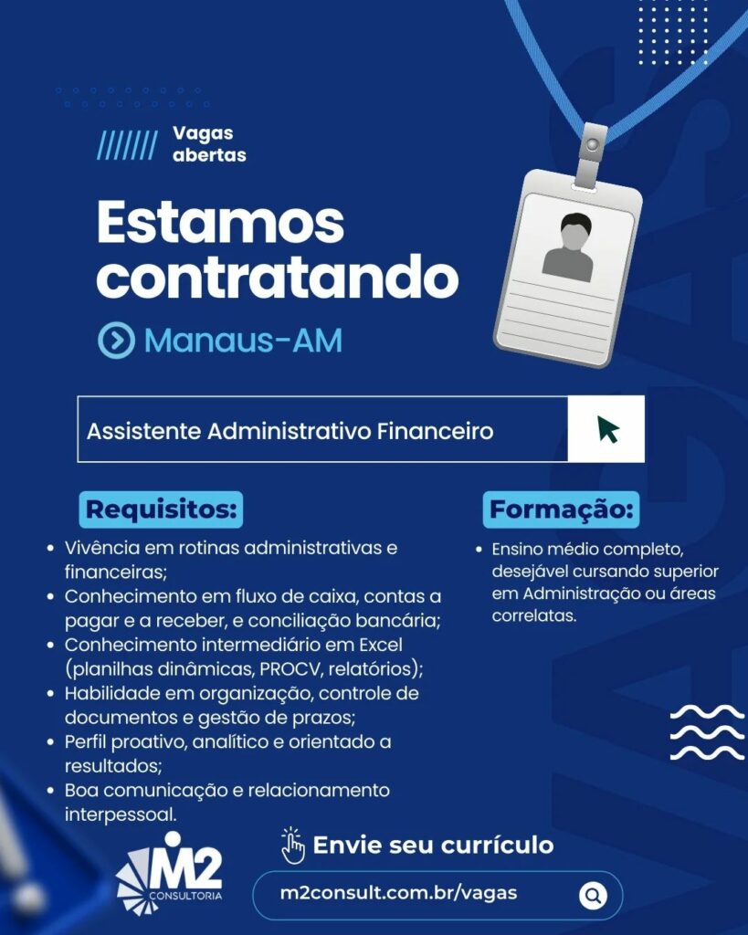 Rh está selecionando Assistente administrativo financeiro; Envie seu currículo!
