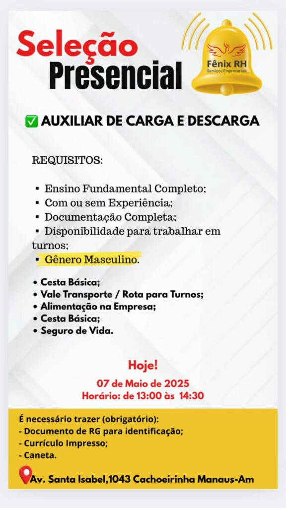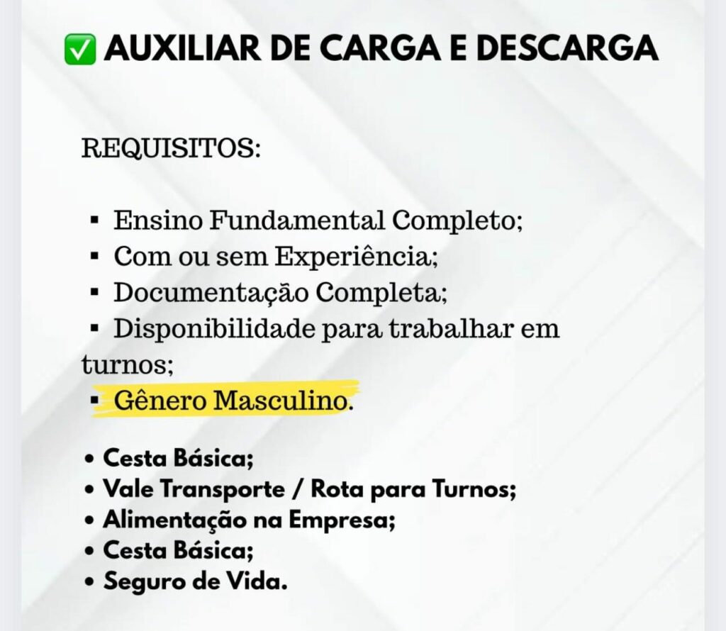 Rh está selecionando Auxiliar de carga e descarga; Envie seu currículo!